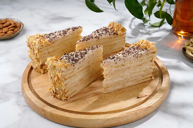 Торт из тонких коржей, пропитанных заварным кремом, приготовленным по классическому рецепту.