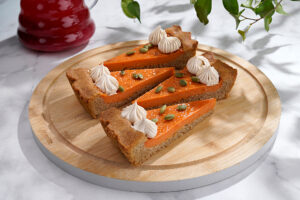 Открытый пирог с тыквенной начинкой и сливочно-кофейным кремом.